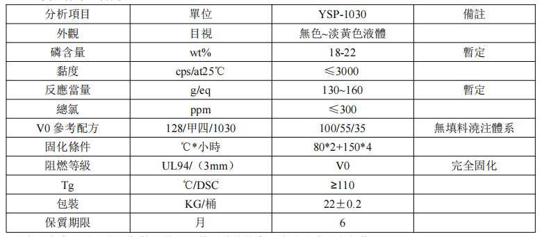 YSP-1030系(xi)列產品適合(he)酸酐固化環(huán)氧樹脂無鹵(lǔ)阻燃體系,其(qi)反應基與等(děng)當量的環氧(yang)樹脂交聯反(fan)應(固化)。